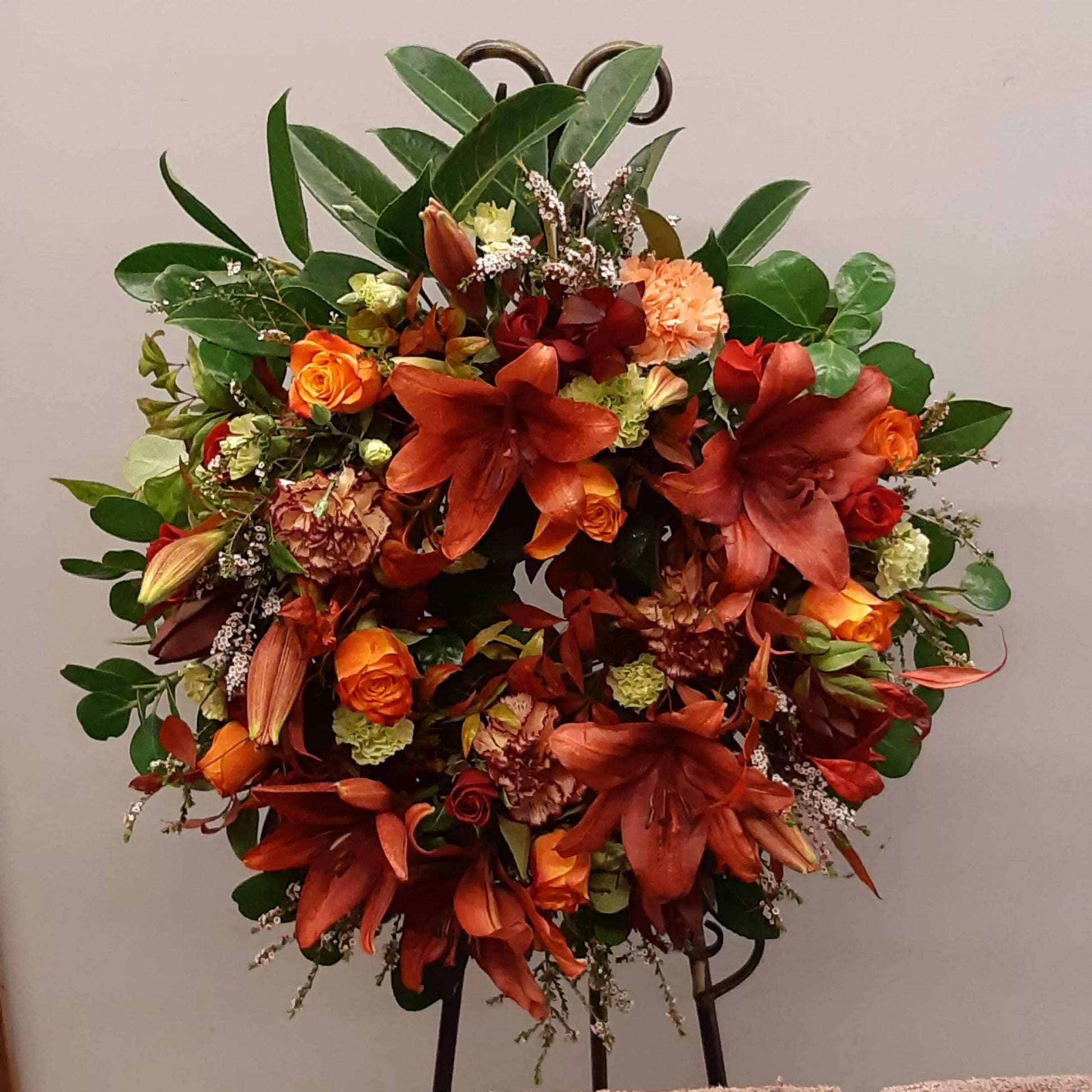 Designed for same day delivery, it ensures your thoughtful message reaches loved ones promptly when they need it most. Perfectly suited as sympathy flowers, the Autumn Shade Wreath conveys respect and condolence with understated elegance. Its carefully selected materials symbolize the cycle of life, offering solace and remembrance in a time of mourning. With expert care in its arrangement and timely delivery, this wreath helps convey your empathy in a meaningful and dignified way.
