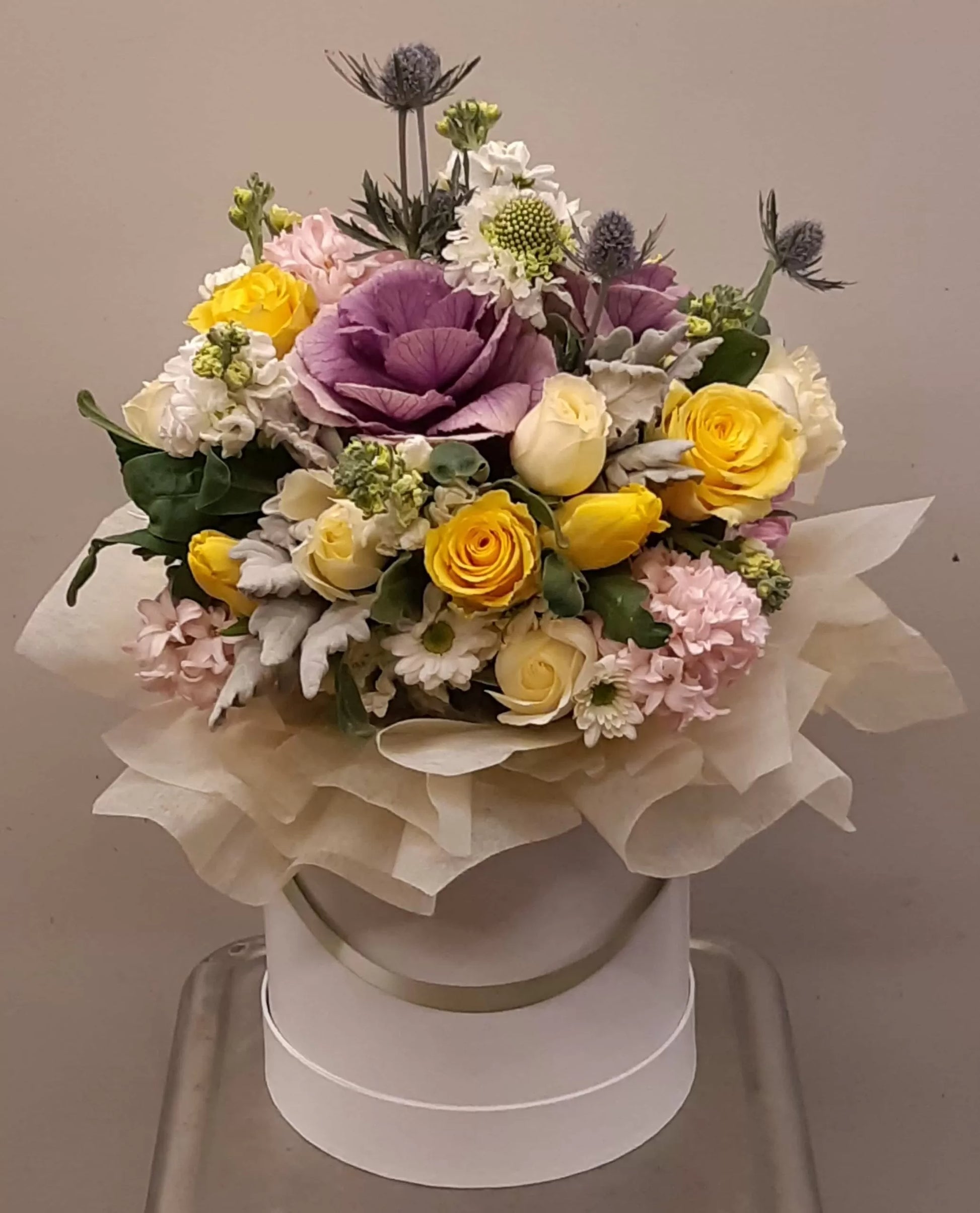 The Pastel Collection Hat Box offers an elegant and sophisticated way to present floral arrangements or gifts, perfectly suited for special occasions or thoughtful surprises. Crafted with attention to detail, this hat box features soft pastel tones that evoke a sense of calm and refinement, making it a versatile choice for a variety of celebrations. Designed to maintain freshness and enhance presentation, the Pastel Collection combines style with practicality.