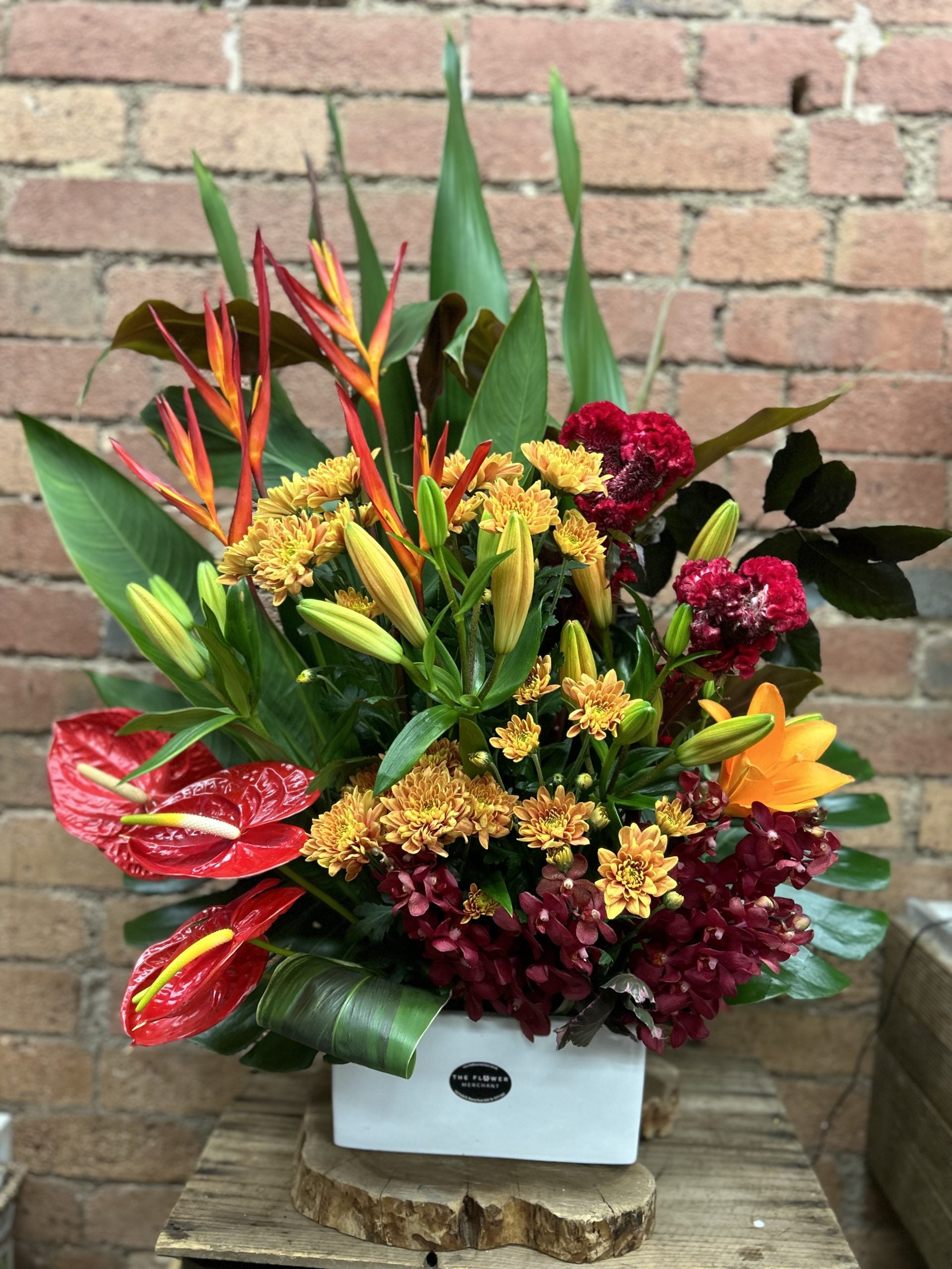 Our same day delivery service ensures your Tropical Arrangement arrives fresh and ready to impress whenever you need it, making last-minute gifting effortless. Experience the tropical charm and sophisticated artistry combined in the Vibrant Collection’s Tropical Arrangement—a true statement piece for every floral enthusiast.